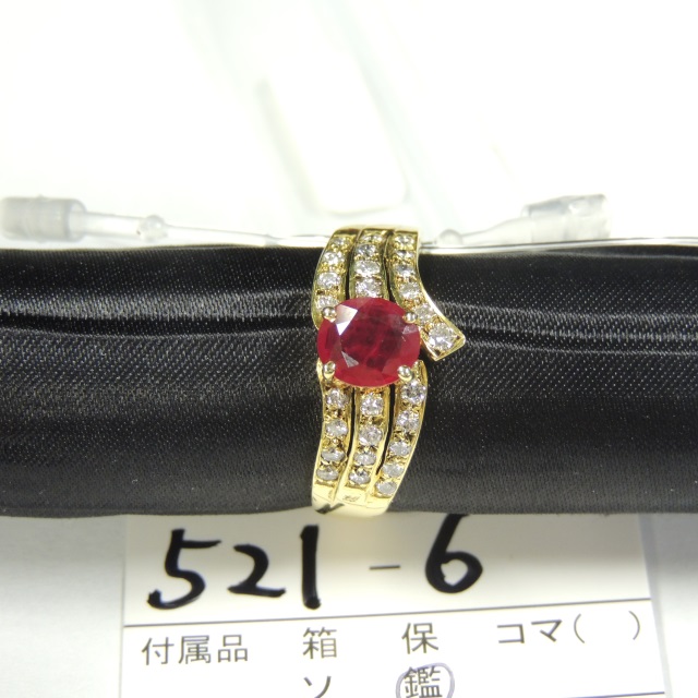 リング ルビー ダイヤ K18YG 6.20g 鑑 石目:R1.05 D0.45