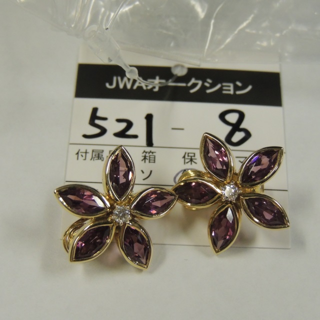 イヤリング ガーネット ダイヤ K18YG 11.90g 鑑 石目:G6.32 D0.15