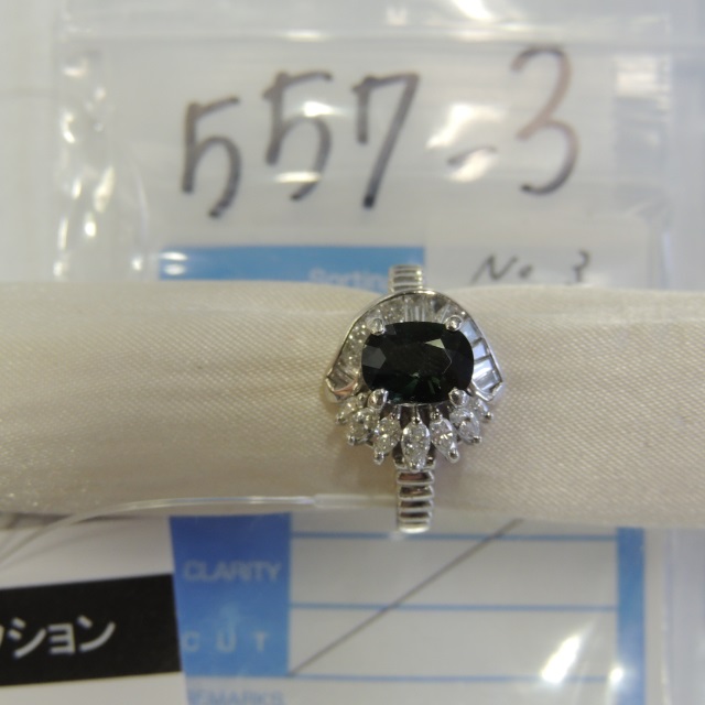 リング グリーンサファイア ダイヤ Pt900 7.90g ソ 石目:GS1.27 D0.39 0.27