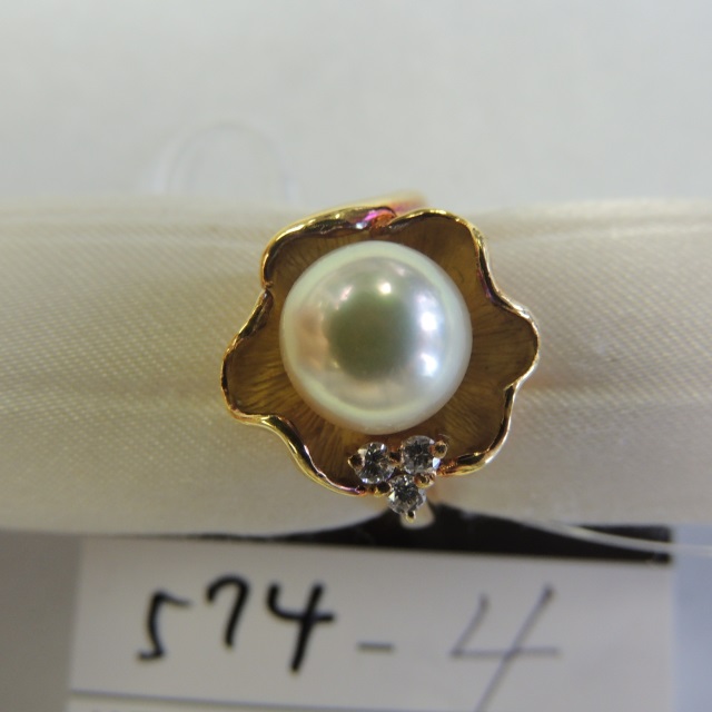 リング パール 9.5mm ダイヤ K18 7.50g 石目:D0.09