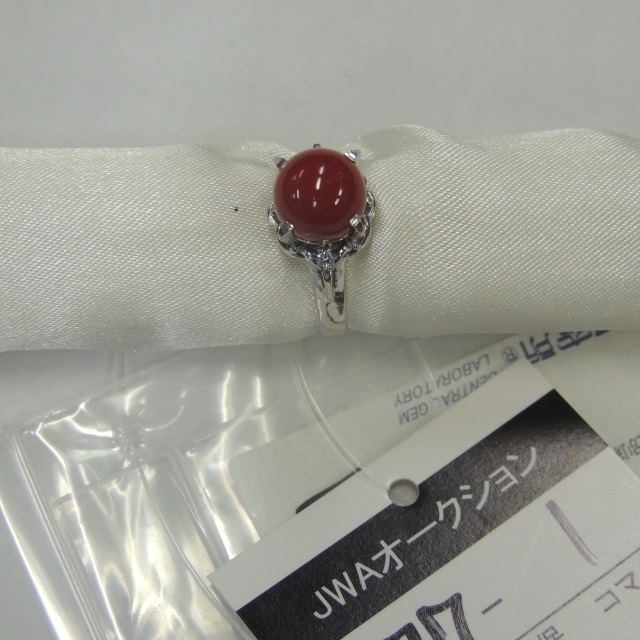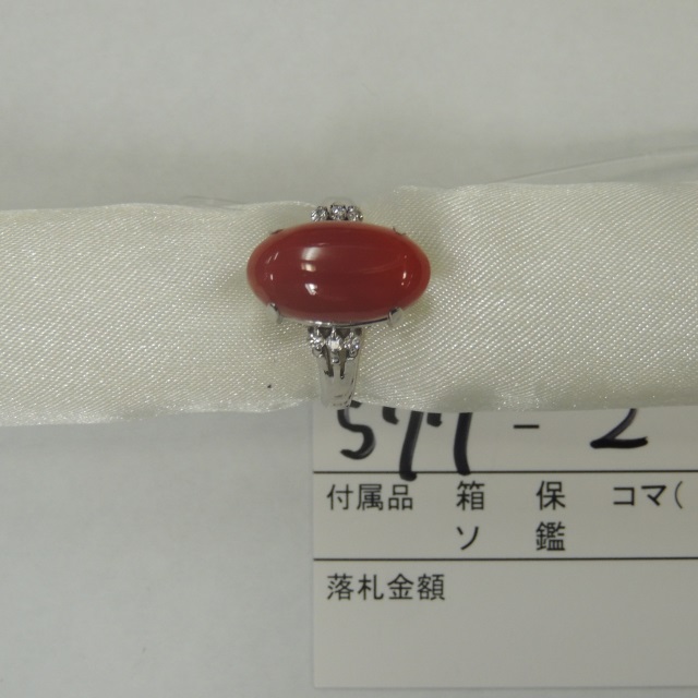 リング サンゴ ダイヤ Pt900 5.90g 石目:4.95 D0.06