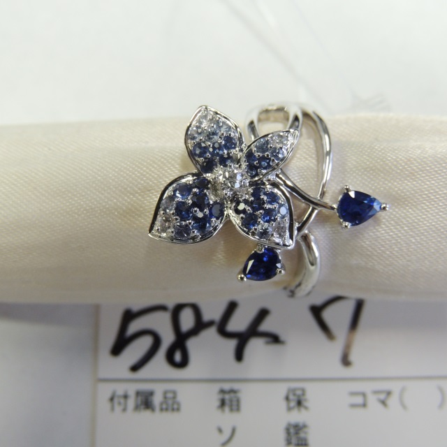リング サファイア K18WG 6.60g 石目:S1.02 S0.09 FD0.05