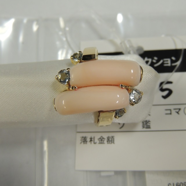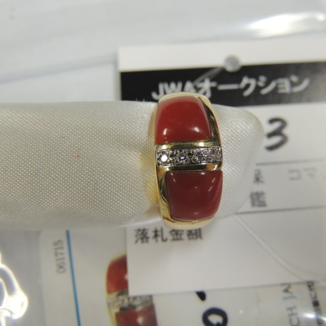 リング サンゴ ダイヤ K18YG 7.50g GRJソ 石目:C D0.44