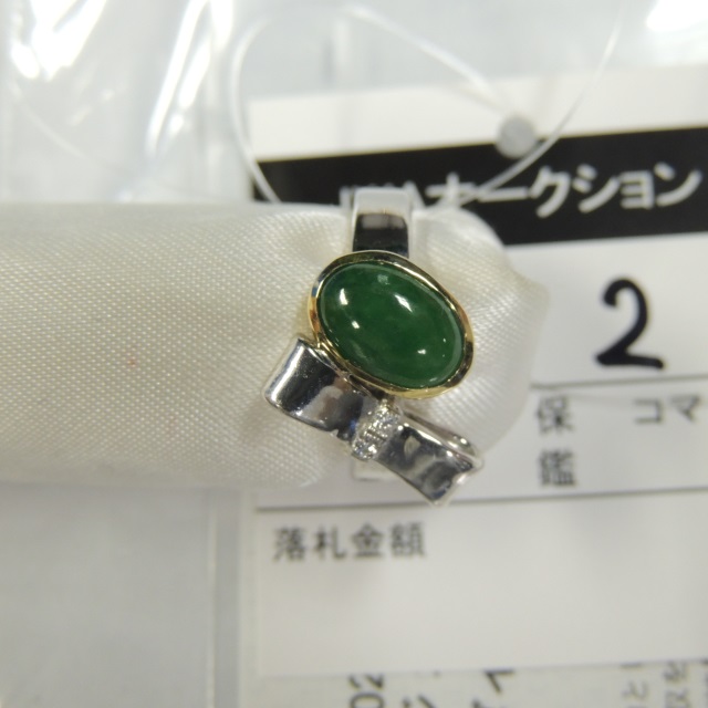 リング ヒスイ ダイヤ K18YG/K18WG 7.20g 中ソ 石目:J1.77 D0.02