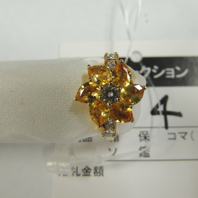 リング ゴールデンサファイア ダイヤ K18YG 4.50g 鑑 石目:GS2.16 D0.35