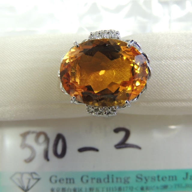 リング 合成シトリン 仕上済 Pt900 9.70g ソ 石目:11.45 D0.08