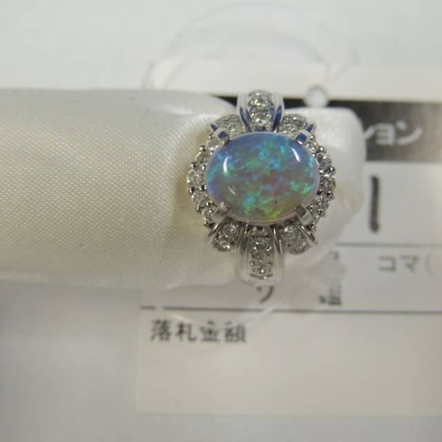 リング オパール ダイヤ Pt900 10.70g 鑑 石目:OP2.94 D0.44
