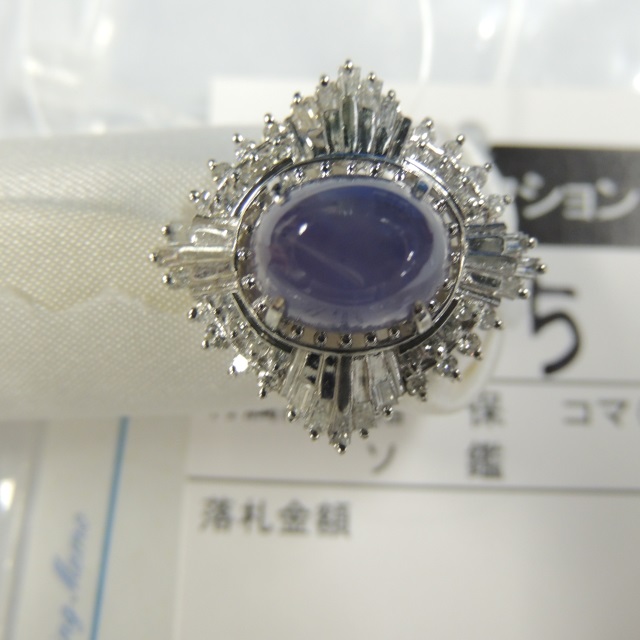 リング スターサファイア ダイヤ Pt900 9.30g GRJソ 石目:SS8.56 D0.60