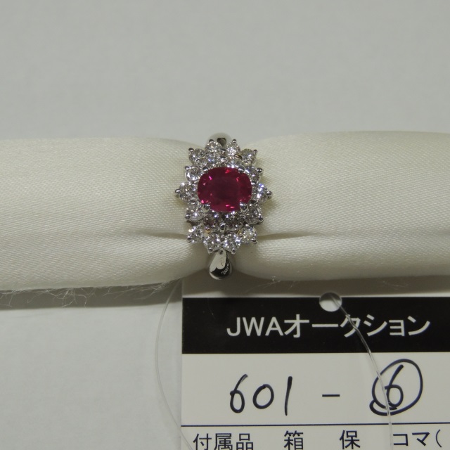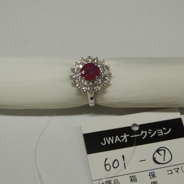 リング ルビー ダイヤ 非加熱 K18WG 6.90g 鑑 石目:R1.17 D1.59