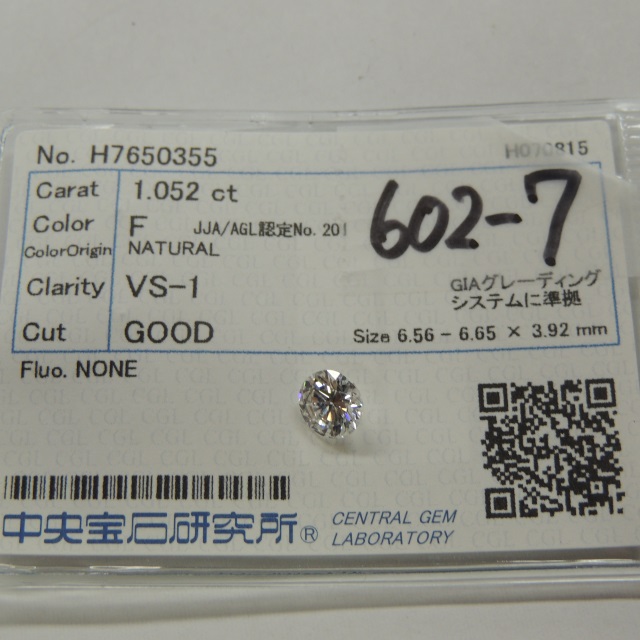 ルース ダイヤ F/VS1/GOOD 中ソ 石目:1.052