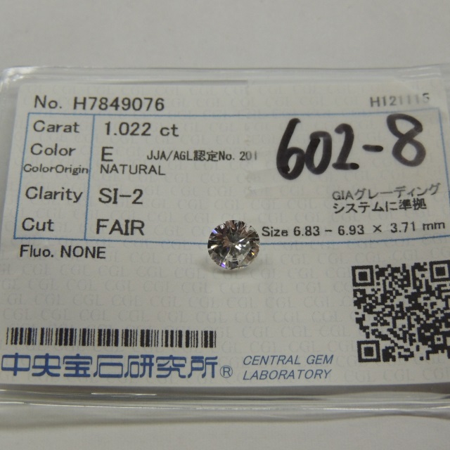 ルース ダイヤ E/SI2/FAIR 中ソ 石目:1.022