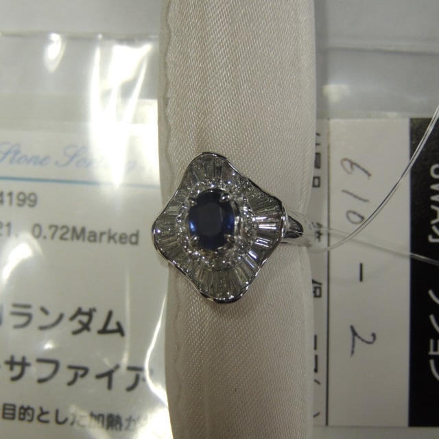 リング サファイア ダイヤ Pt900 5.20g 中鑑 石目:S1.48 FD0.31