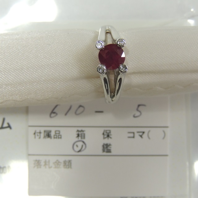 リング ルビー ダイヤ Pt900 7.60g GRJソ 石目:R1.19 D0.04