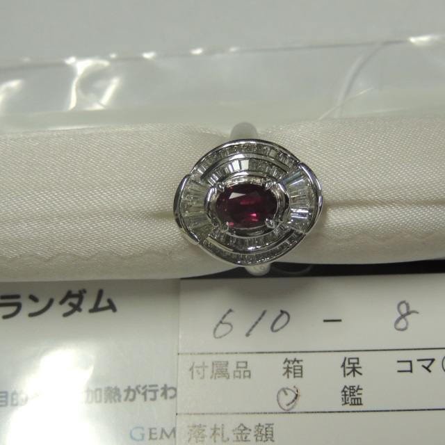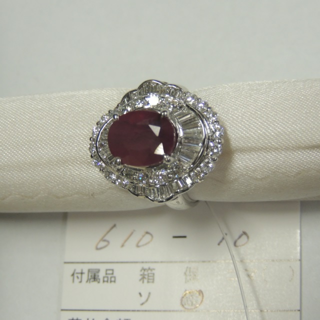 リング ルビー Pt900 7.80g GRJソ 石目:R1.099 FD1.00