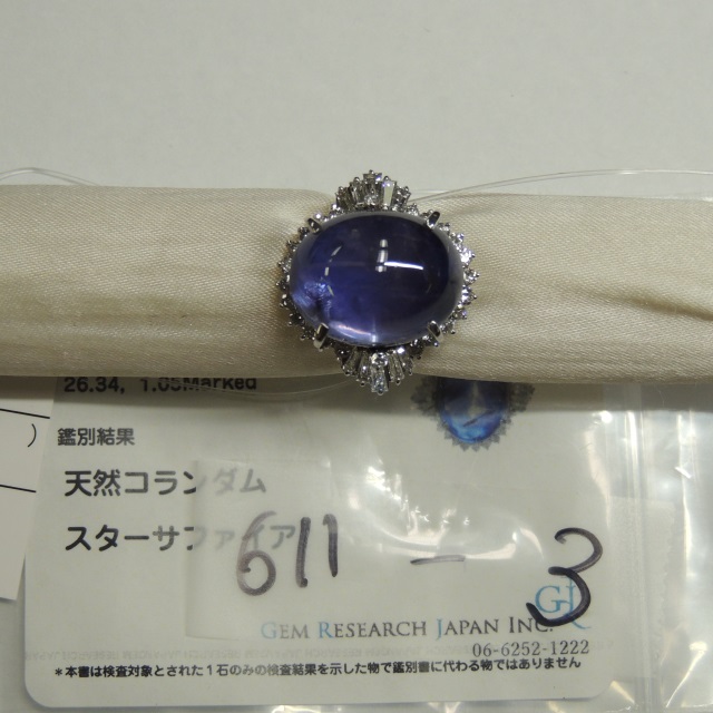 リング スターサファイア Pt900 14.80g GRJソ 石目:SS26.34 FD1.05