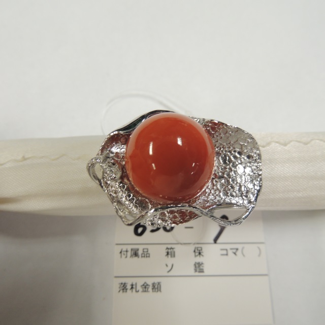 リング サンゴ 17.6mm ダイヤ K18WG 20.70g 石目:D0.02
