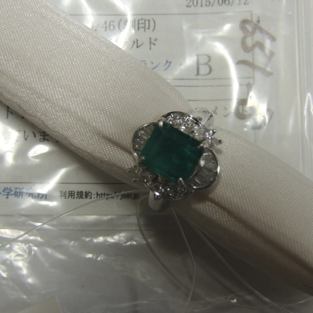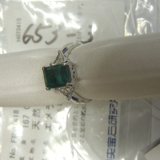リング エメラルド ダイヤ Pt900 8.80g 鑑 ソ 石目:2.15 D0.46