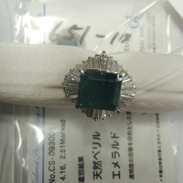 リング エメラルド ダイヤ Pt900 12.70g GRJソ 石目:4.16 2.51