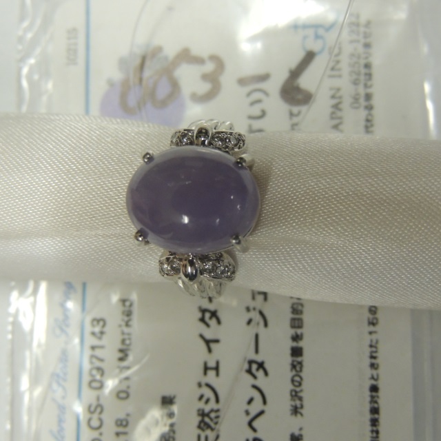 リング ラベンダーヒスイ ダイヤ Pt900 12.00g GRJソ 石目:LJ8.18 D0.11