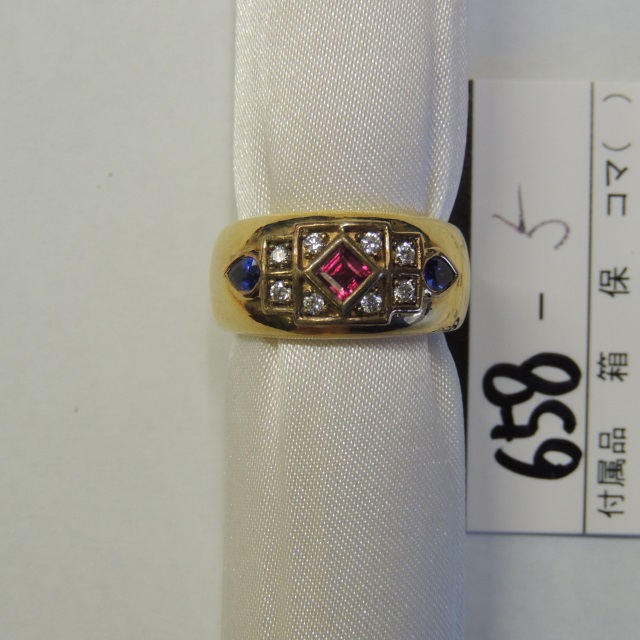 リング ルビー サファイア ダイヤ K18 12.00g 石目:R0.26 S0.32 D0.14
