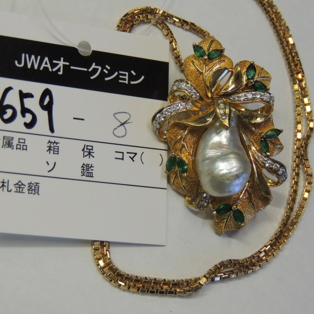 ペン・ブローチ パール エメラルド ダイヤ 18K/K18 25.40g 石目:0.36 D0.33