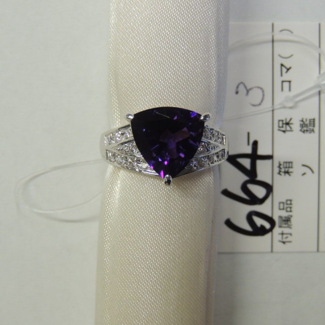 リング アメシスト ダイヤ Pt900 8.70g 石目:3.43 D0.22