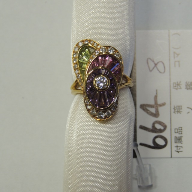 リング トルマリン ペリドット アメシスト ダイヤ K18 7.40g 石目:TPA1.45 D0.61