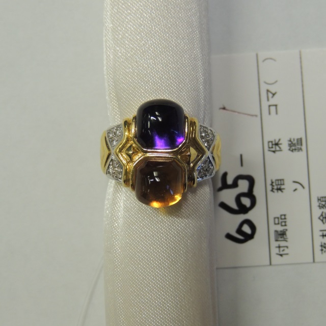リング シトリン アメシスト ダイヤ K18 12.60g 石目:0.18