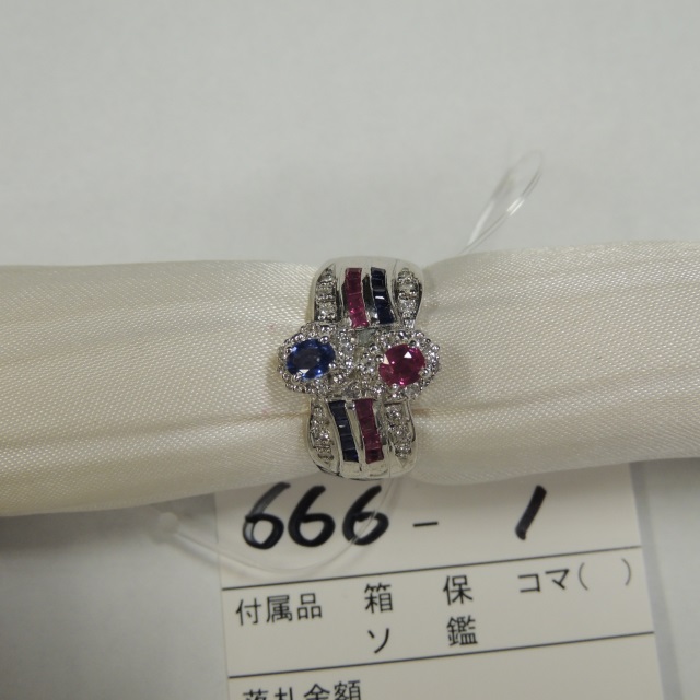 リング エメラルド ルビー サファイア ダイヤ K18 8.40g 石目:E0.25 R0.50 S0.33 D0.79
