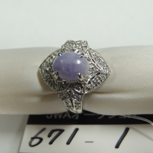 リング ラベンダーヒスイ ダイヤ Pt900 9.40g 鑑 石目:LJ2.32 D0.36