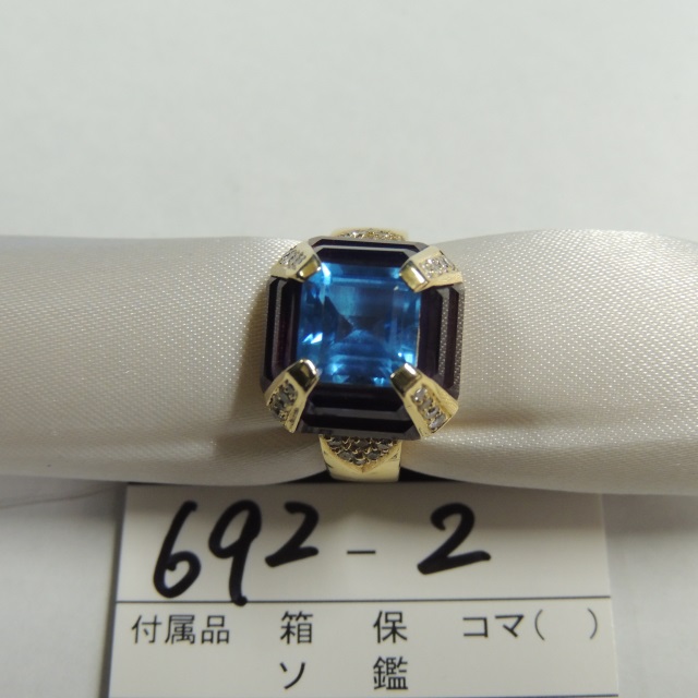 リング アクアマリン ガーネット ダイヤ K18 9.60g 石目:A2.10 G2.10 D0.30