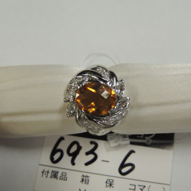 リング シトリン ホワイトサファイア ダイヤ Pt900 11.30g 石目:CT1.92 WS0.40 D0.19