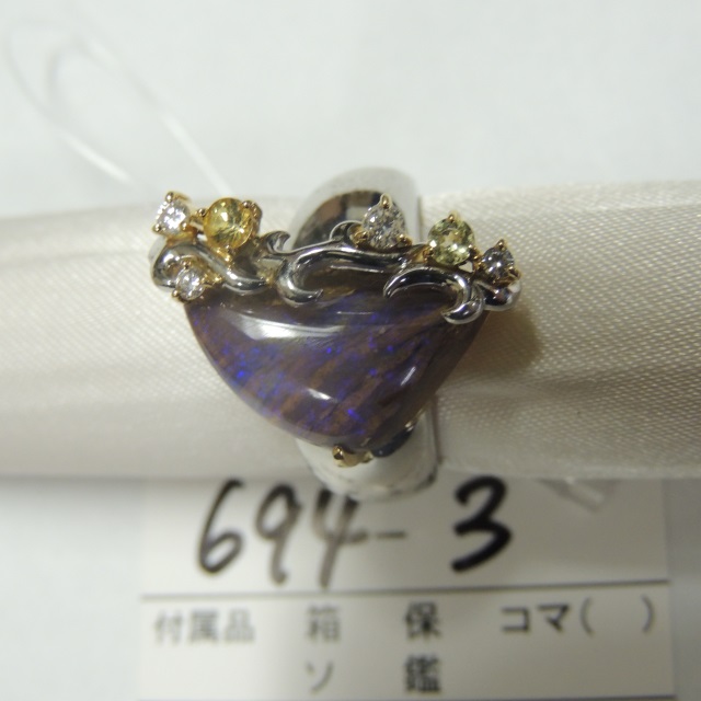 リング ボルダーオパール シトリン サファイア ダイヤ K18/Pt900 15.60g 鑑 石目:7.24 0.13