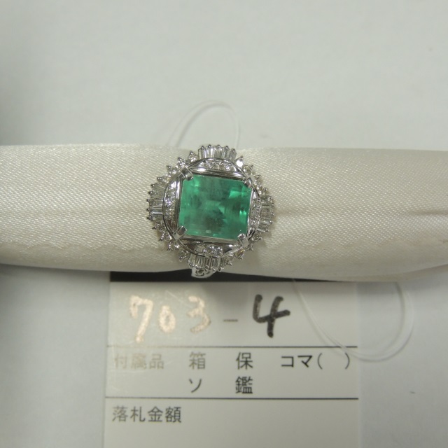 リング エメラルド ダイヤ Pt900 8.40g 石目:E3.57 D0.60