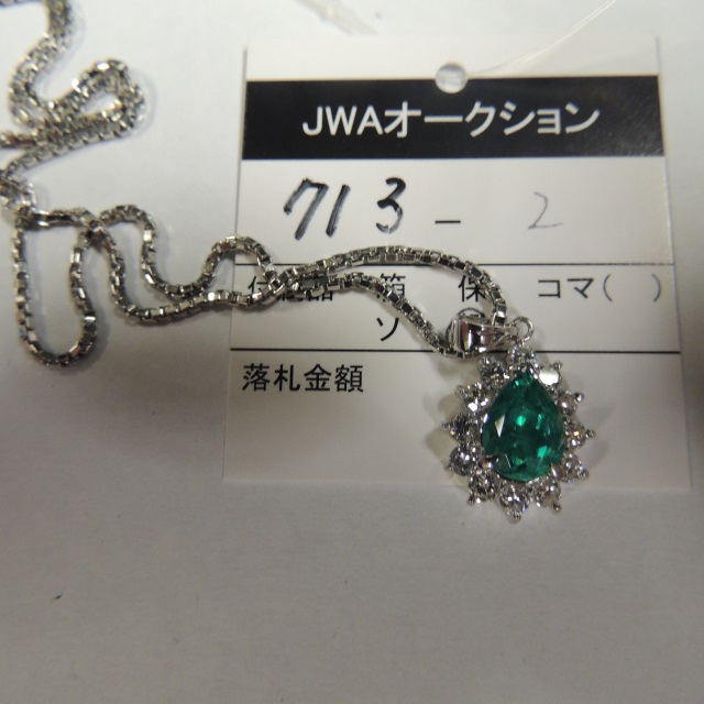ペン・ネック エメラルド ダイヤ Pt850 10.70g 鑑 石目:E1.30 D0.76