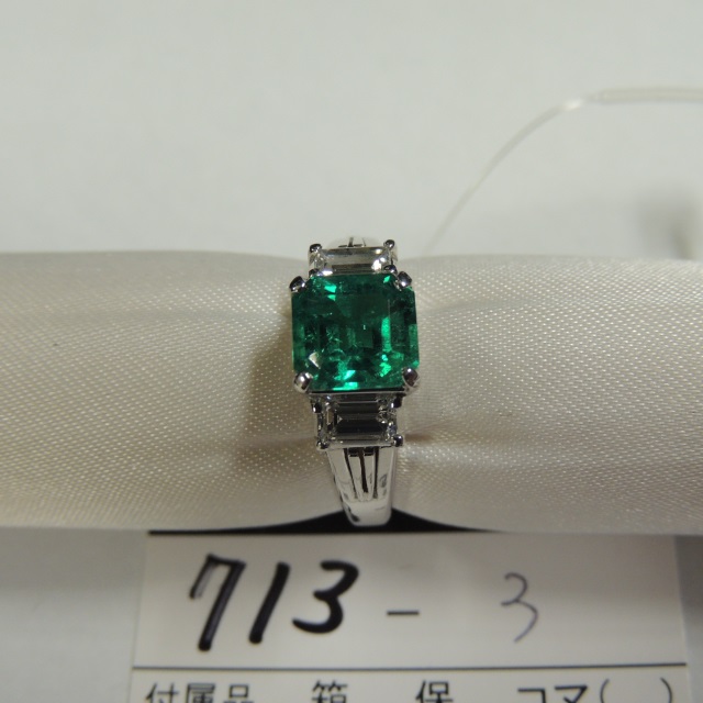 リング エメラルド 通常 ダイヤ Pt950 4.40g 鑑 石目:E0.57 D0.33