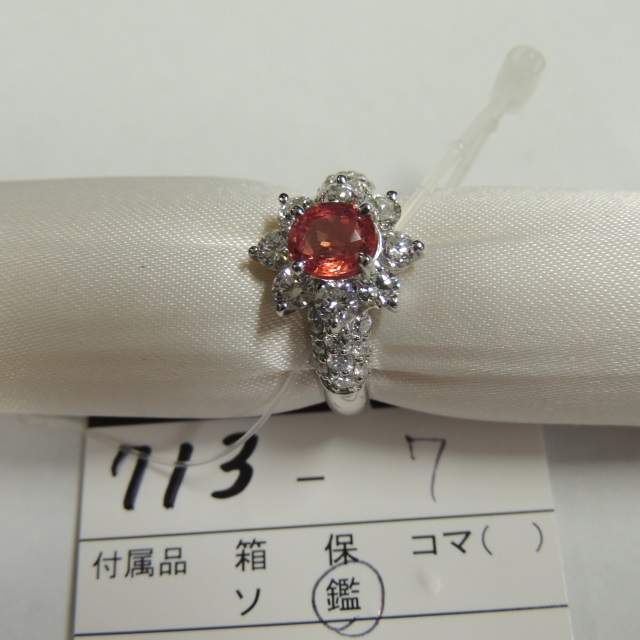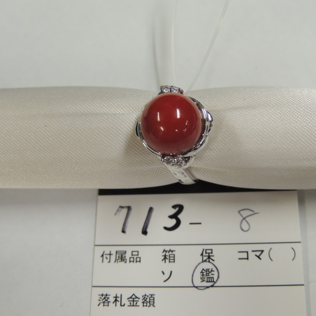 リング サンゴ ダイヤ Pt900 6.60g 鑑 石目:D0.07