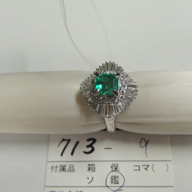 リング エメラルド ダイヤ Pt900 9.40g 鑑 石目:E1.20 D1.09