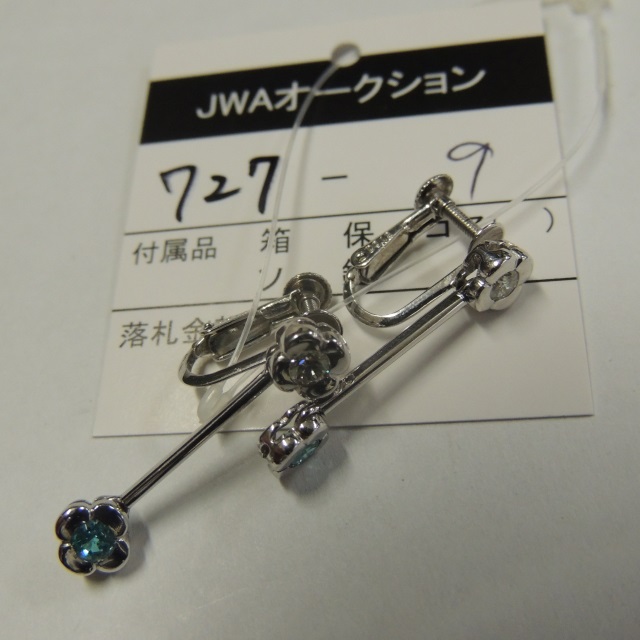イヤリング パライバトルマリン ダイヤ Pt900 5.40g 鑑 石目:0.155 D0.12 0.155 D0.12