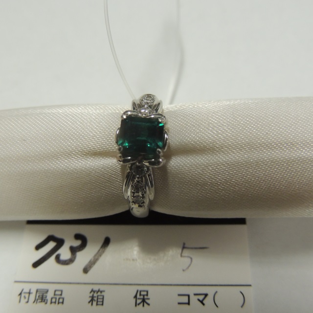 リング 京セラ 合成エメラルド ダイヤ Pt950 7.00g 石目:E0.63 D0.12