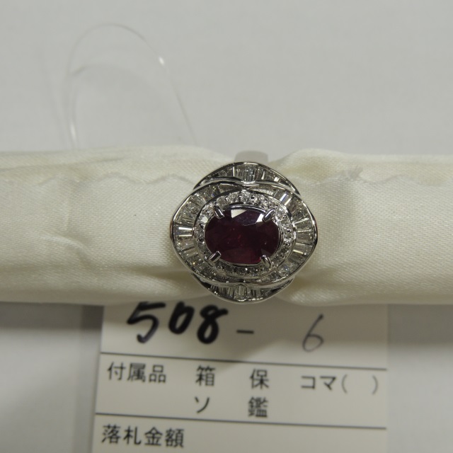 リング ルビー Pt900 12.70g 石目:1.22 0.83