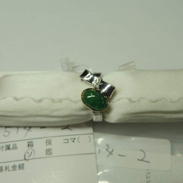 リング ヒスイ ダイヤ K18/K18WG 7.20g 中ソ 石目:J1.77 D0.02