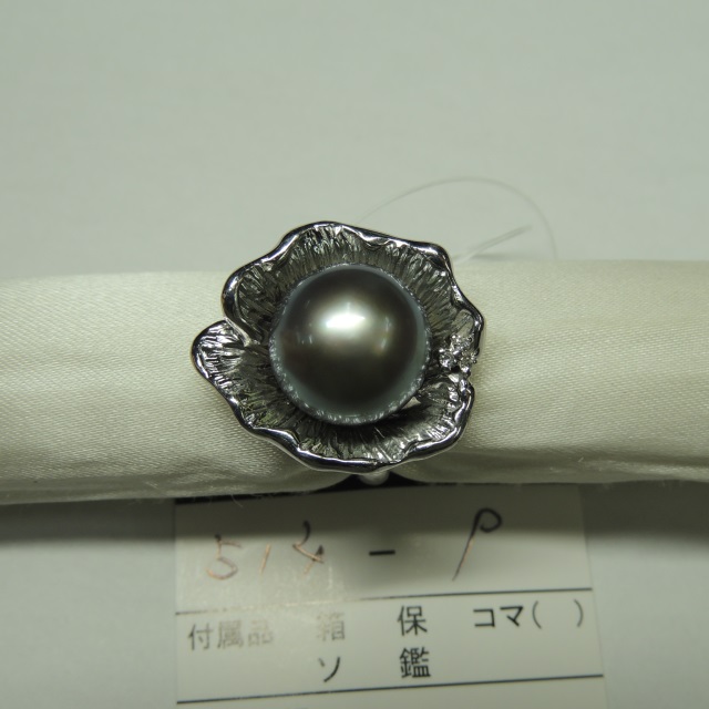 リング パール P12.5mm ダイヤ Pt900 12.60g 石目:D0.03