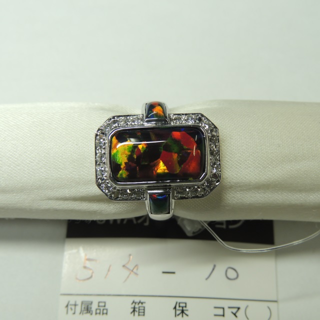 リング ファイヤーオパール ダイヤ Pt900 6.80g 中ソ 石目:O3.56 D0.15