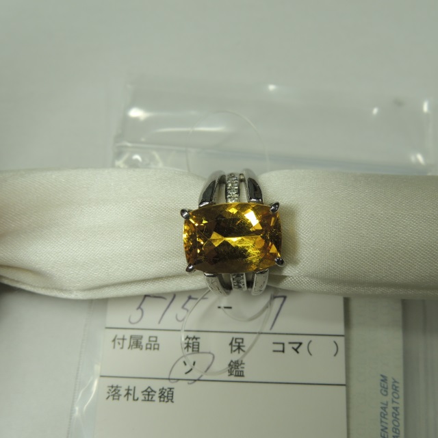 リング イエローベリル K18WG 11.70g 中ソ 石目:Y6.56 FD0.10
