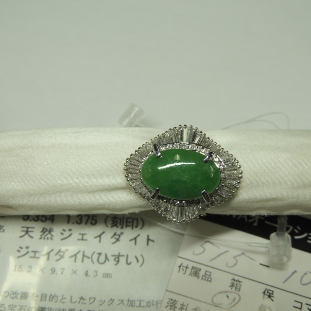 リング ヒスイ Pt900 14.00g 中ソ 石目:J5.354 FD1.375