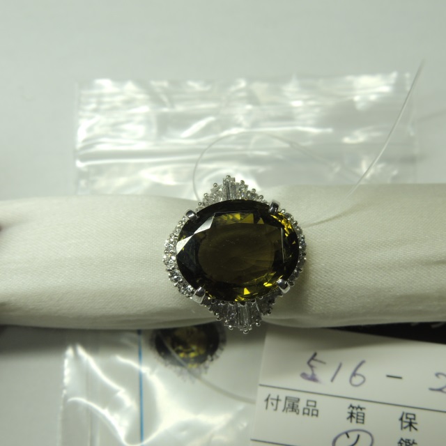 リング ヘリナイトガーネット ダイヤ Pt900 9.70g 中ソ 石目:G3.63 R0.46 D0.30