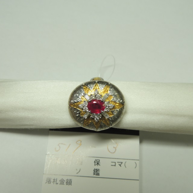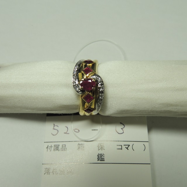 リング ルビー K18/Pt900 6.30g 石目:R0.79 D0.07
