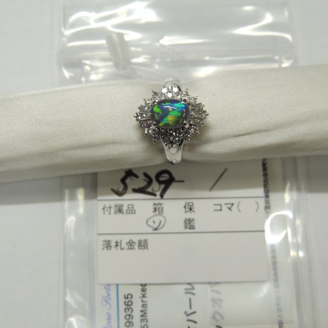 リング ブラックオパール Pt900 12.70g 中ソ 石目:4.158 D1.259