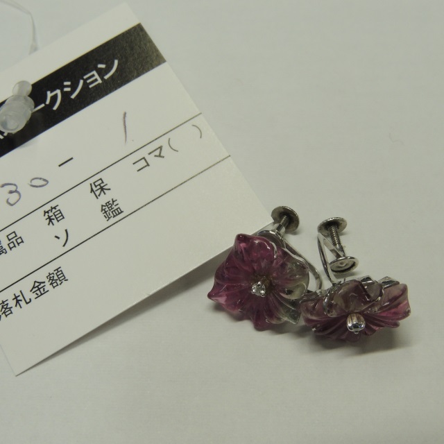 イヤリング トルマリン 総重量 Pt900/Pm850 4.80g 石目:T3.80 T3.08 D0.02 D0.02